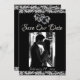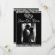 Denna romantiska design har en elegant svart bakgrund med glitterkanter, platshållare för parets foto och två silverhjärtan sammanflätade med datumet för evenemanget i elegant skrivstil på framsidan. Baksidan har en monogram-platshållare, mer information och plats för din webbplats. Finns även med olika bakgrundsfärger för dina bröllopstema färger. (Glitter är simulerat i konstverket). Designad för att samordna med "Two Shall Become One - Hearts, Doves & Glitter" brölloppskollektion. För att ändra detaljer, klicka på «Personalisera». Ersätt foto med ditt eget. För att flytta texten eller ändra textstorlek, teckensnitt eller färg klickar du på «Klicka för att anpassa ytterligare»