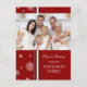 Season Greetings-anpassningsbar-fotokort i rött och vitt snöflake mönster, elegant och enkelt med snyggt-skript. Önska din familj och dina vänner så bra som möjligt med den här julhelgen med roligtens vykort.
