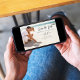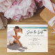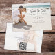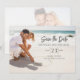Den här designen har ett bröllop-fotokort med spara, med skannerbar QR-kod, en elegant, typografi stil, med ett fotoöverlägg och två fotomallar, minimalistiskt, kalligrafiskt skript Spara datumtexten.