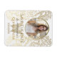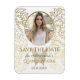 Lyxig, elegant, guld folie fjäril i kombination med anpassad bild av flickan och elegant guld blommig bakgrund. Whimsical, unik, bedårande Quinceanera Spara Datum inbjudan flexmagnet.