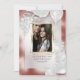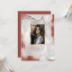 Lägg till ditt foto i en guldbelyst geometrisk fasetterad ram. Glänsande terrakotta-luminescerande bakgrund med lysande rosblad, eucalyptusblad, babysand och gnistrande stjärnor. Baksidan har en komplementär koordinerad färg. Denna design ser särskilt snygg ut på pappersvalet Pearl Shimmer. Anpassa text, typsnitt, färg och storlek. Vi skapade denna mall för att göra det enkelt för dig att anpassa den med din egen information. Detta är en del av en komplett brölloppspresentserie med matchande bröllops-, baby shower- och andra evenemangspresentkort. Originalkonst © av WhimsicalArtwork™.