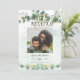 Vi presenterar vårt vackra nya Photo Bröllop spara datum, som har en fantastisk vattenfärgsdesign i löv med guld-accenter. Dessa sparar datumet perfekten för par att planera ett botaniskt, grönt temat bröllop. Konstruktionen är elegant, tidslängd och perfekt för en trädgård, utomhus eller på bakgården bröllop. Det sparar datumet ett foto av paret, skapar det personligt och minnesvärt för dina gäster. Dessutom kan du lägga till en unik QR-skanningskod för att få en liten nyans och bekvämlighet. Dessa sparar datumet ingår i en större samling som även omfattar inbjudningar, OSA kort och till och med ett passande välkomsttecken för bröllop för att slutföra utseendet av din speciella dag. Vattenfärgen eukalyptus löv och guld-accenterna gör denna samlingstid till en perfekt för alla säsonger, vilket ger en aning natur och elegans till din speciella dag. Utformningen är mångsidig och kan komplettera både klassisk och bohemininspirerad bröllop. Starta din bröllop-resa med det här charmerande, botaniskt inspirerade fotot Bröllop spara datum och bär temat genom hela bröllop med matchande samling.