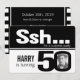 Enkel svart-vitrandig dubbelsidig herr enkel stil födelsedags överraskning 50-årsfest inbjudan. Lägg till födelsedagshemmens foto och anpassa med dina egna detaljer femtioårsfirande detaljer.