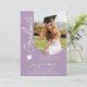 Foto Studentfest Modern Elegant Script-inbjudningar innehåller ditt favoritfoto med texten "Student" i elegantens calligraphy-skripttypografi på en lilac-bakgrund. Lägg till din inbjudan till studenten nedan. Anpassa genom att redigera texten i textrutorna. Skicka som en omedelbar digital nedladdning, som en fysisk inbjudan via e-post eller båda. Skapat av ©2025 Evco Studio www.zazzle.com/store/evcostudio