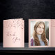 Ett tack för en milstolpe-födelsedag med utrymme för två, två av dina egna foton. En chic giftig bakgrund för metalliska tittar i guld och guld i ro, färgad av koppar med blanka stjärnor. På framsidan finns ett handskript med texten stil Inside: Template for Your tackkort and namn. Mall för ditt första foto. Bakgrund ro guld. Tillbaka: Sätt in det andra fotot.