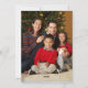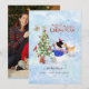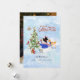"Foto Vattenfärg Snöman Julgran Ren Fågel Semesterkort," söta skogsdjur dekorerar sin julgran tillsammans medan snön faller. Röd script typografi design läser, "Vi önskar er en God Jul." Personlig text med tre rader med din familjs namn eller meddelande. Konst målad av internationellt licensierad konstnär och designer, Audrey Jeanne Roberts, upphovsrätt.