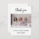 Ett modernt tackkort för bröllopsfest med foto. En klassisk vit bakgrund. Personifiera och lägg till ditt foto och tackmeddelande.