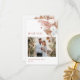 Detta eleganta tackkort för bröllop i moderna färger har dammig ros och blå blommor på tropiska blad och ett anpassat foto på en vit bakgrund. Matchande bröllopsinbjudan finns tillgänglig.