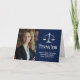 Elegant marinens blåbrottsskola studenten tackar dig för att du har kort med rättvisans skalor bredvid ditt foto från student. Anpassa de här advokatkorten med chicens vita skript bredvid din advokat fotografi.