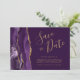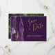 Den här eleganten är modern när du sparar datumkortet och har en lila vattenfärg som går upp i gräns och trimmas med faux guld glitter. Anpassadet kombinerar handskriftsskript guld-färgad, tryckplåt och kursivt typsnitt på en rik plumbakgrund. Byt enkelt ut exempelbilden på baksidan mot ett eget vågrät-foto.