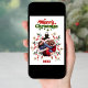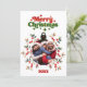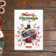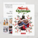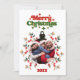 En vit bakgrund, röd text och grönt Text och foto på framsidan. Dekorerad med röda bär och en bugg bild ram. Din text och namn på baksidan. God jul är skrivet med ett retro stil-typsnitt i rött, grönt och faux guld. Tillbaka: En 8-fotorutnätsmall för året som granskas.