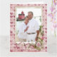 Vintagekort för fotokort och blommigtbukett på en hjärtabakgrund.