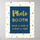 Fotoautomat skylt affisch för baby shower, bröllop eller brud shower, i mörk marinblå och vit med guld konfetti och handskrivna bokstäver. Perfekt för en baby shower, bröllop eller brud shower.