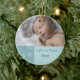 Baby första anpassade för julprydnad med ditt egna bebisfoto i elegant turkos med det festliga snowflakemönster. En stilfull julgåva för någon ny mamma.