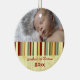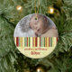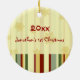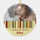 Baby första anpassade för julprydnad med ditt egna bebisfoto i gult, rött och grönt med festlig snöflingor och randmönster. En minnesvärd julgåva för någon ny mamma.
