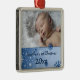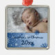Baby 1st anpassade för julprydnad med ditt egna bebisfoto i elegantt festligt snöflingormönster för blått och för vit. En minnesvärd gåva för någon ny mamma denna julhelg.