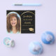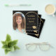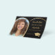 Observera att det här Spara datumet är pappert och mycket tunt. Kuvert ingår inte. Om du vill ha tjockare Spara datumkort (samma design) kan du besöka vår butik. Ett foto Spara datumet för en studentfest. På framsidan: Lägg till ett eget lodrät storlekt foto av student. En faux guld fotoarch ram. En klassisk svart bakgrund, gyllene text. Mallar för namn och datum. Namn och texten: Spara datumet är skrivna med ett modernt handskript i stil. Tassel topper med lock. Tillbaka: Information om party.