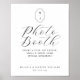 Elegant fotobåsskylt med skrift. Minimal design med elegant skrift och anpassad personlig monogram för paret. Anpassa med en monogram, parets namn och datum för bröllopet.