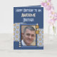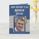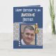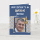 Grattis på födelsedagen till en fantastisk broder. Lägg till ett foto och ett meddelande. Blått och brunt. Ändra texten till en annan person i kostym.