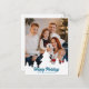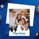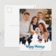 I den här chicen har den moderna helgdag av foto ett vykort för lodräts helgdag som är framtaget av en grund gräns av vit Julgranar silhuett. Anpassa med blått skript för ett vackert, minimalistiskt fotografkort till julvykortet med Glad helg över ditt namn.
