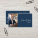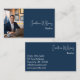 Ett modernt affärskort för en verkstad eller ett äkta gods agent. Lägg till ett eget foto och skapa ett professionell-affärskort med marin blå bakgrund och contemporary typsnitt i vitt.