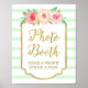 Fotobåsskylt affisch för baby shower, bröllopsfest eller bröllop i ljust pastell mintgrön och vit randig mönster med guldbård, rustika rosa och persikoros vattenfärg blommor och handskrivna stilen bokstäver. Perfekt för en baby shower, bröllop eller bröllopsfest.