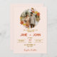 Det här bröllop-kortet har ram rustiska vattenfärgen höstblommor och löv orange, burgundi och med beige och brunt pampasgräs Innehåller foton av par. Om du vill ha en mer avancerad anpassning av den här designen klickar du på länken "anpassa ytterligare". Matchande objekt är också tillgängliga.