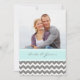 Bröllopsmeddelande anpassningsbar fotokort i elegant och contemporary kol grått, ljusturkosa blått och vitt modernt chevron zigzags mönster. Anpassa dessa inbjudningar med din bröllop-information och ditt eget foto. Finns i matchande produkter för alla dina behov i bröllop.