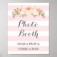 Fotobutiksskylt affisch för baby shower, bröllop, födelsedag eller brudfest i ljus rosafärgad och vitrandigt mönster med vintage rosa akvarellblommor och handskrivna bokstäver. Perfekt för en baby shower, bröllop eller brudfest.