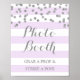 Fotobutiksbröllopsskylt lila silverkonfetti poster