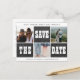 Modern samtida geometrisk stil stor versal typografi spara datum bröllops inbjudan i mörkgrå kolstavlat svart tavla och vit med en kollaasj av tre fyrkantiga foton. ++++++ Anpassa det med dina foton och detaljer! +++++++++++++++++++ Observera att färgen och teckensnittet för texten kan ändras på båda sidor. Du kan ändra dem efter att du valt ALLA Anpassa.