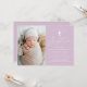 De enkla baptisminbjudningarna innehåller ett kalligrafiskt skript med avslappnad och ljusa lilor för en design som är perfekt för en modern baby-baptism. Anpassa elegantens baptism-inbjudningar med ditt barns foto-, namn- och religiösa-händelseinformation nedan. Baksidan av fotobaptisminbjudan ger utrymme för ytterligare text och foton. Den här inbjudan till fotolila-baptism är perfekt för flickor!