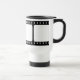 Svartvita traditionella filmar remsasjalar omkring sömlöst på denna beställnings- muggdesign. Många muggstilar och färger är tillgängliga. Visas den kalla tittar vitrostfritt ståltravel mug.