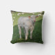 En kvadreradekorativ kudde eller dämpar med ett foto av ett krämigt - anseende för vitcharolaiskalven i ett fläckigt fält skuggar och solljus med vila av flocken i den avlägsna bakgrunden. Varje nötkreaturbonde bör ha en!