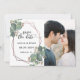 Vill du tittar ett unikt foto spara datumkortet? Titta på det här! Den här produkten har ett enda foto med geometriskt ram i ro guld och eukalyptus ram.