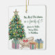 Vår första jul som en familj på fem (redigerbar för valfritt nummer) personlig med namn, året och ett foto på baksidan. Utformningen har ett belyst julgran med presenter som är täckt av skräp och gåvor. Söte nyfödd bebis tog upp helgdag som en ornament nyckelepé för att fira ett nytt tillskott till din familj i år.