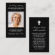 Smärtan av sorg förstärks när någon tas för tidigt och lämnar bakom en livstid av drömmar, ambitioner och minnen. Det här enkla, moderna bönekortet för begravning innehåller ett foto av den person du minns, en dikt som lyder "din närvaro vi saknar, ditt minne vi uppskattar, älskar dig alltid, glömmer dig aldrig", tillsammans med namn, och åren har levat. Kortets baksida innehåller en dikt eller en religiösa som kan anpassas till familjens önskemål. Detta tankeväckande kort hedrar en älskad persons liv på ett meningsfullt sätt, samtidigt som det ger komfort till familj och vänner.
