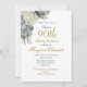 90:e födelsedagsinbjudan till Blommigt med personligt monogram födelsedag. Åldern kan ändras för vilken ålder som helst, inte bara för 90 år. En söt vit blomma och blå bladbakgrund. Informationen ändras lätt till din egen anpassningsbar med ord-överraskningen som kan avlägsnas, åldern ändras och födelsedatumet tas bort om du vill. Ändra fotot till eget.
