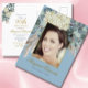 90:e Blommigt på födelsedagen, personlig födelsedagsinbjudan. Åldern kan ändras för vilken ålder som helst, inte bara för 90 år. En söt vit blomma och blå bladbakgrund. Informationen ändras lätt till din egen anpassningsbar med ord-överraskningen som kan avlägsnas, åldern ändras och födelsedatumet tas bort om du vill. Ändra fotot till eget.