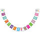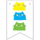 Trendig, modern, söt, färglös födelsedagspresent som buntar flaggor för barn, med anpassningsbar foto av flickan och roliga kawaiikatter.