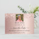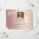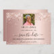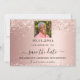Spara datumkortet glamoröst i 50:e (eller i vilken ålder som helst) födelsedagsfest. En övertoningsbakgrund för ro guld. Dekorerad med konetti. Texten: Spara datumet skrivs med ett stort trendig-handskript i stil. Anpassa och lägg till ett foto.
