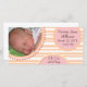 Söt fotokort baby födelsemeddelande. I persikor och rosa, med rand och polka dots. Anpassa med din baby bild- och födelsestatus. Snyggt kort till med familj och vänner och perfekt för raming.