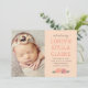Snyggtens kort för födelseanmälan som introducerar ditt söta flicka har två nyfödda foton (fram och bak) med en snyggt som innehåller din baby fullt och födelsestatus. Klistra in persiko- och grått-färg-orangen kan ändras för att koordinera med dina foton. Söt blommor i nyanser av laxens rosa/orange och rosa av hallon.