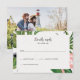 Det här bröllopet OSA är skapat att samordnas med vår "Tropical Jungle Bröllop"-samling och innehåller en vacker illustration av tropiska blommor från rosa och grönt djungelns blad och är lätt anpassade med dina svarsuppgifter. Kortets baksida kan anpassas med ett av dina favoritfoton på förlovningen.