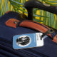 Modern och professionell-tagg för fotografering av bagage som innehåller ditt foto i en cirkel ram med trendig minimalistisk typografi. Det här är den stilla blå versionen.