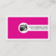 Fotograf feminina visitkort-het rosa, med en kamera på framsidan och dina initialer/monogram på baksidan tillsammans med en QR-kod för mer information.