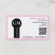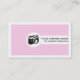 Fotograf feminina visitkort i rosa, med en kamera på framsidan och dina initialer/monogram på baksidan tillsammans med en QR-kod för mer information.