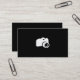 En enkel men modern design. En svart bakgrund med en vitkamera i centrera av kortet. All information är på baksidaen av kortet. Bakgrundsfärgen kan ändrande.