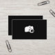En enkel men modern design. En svart bakgrund med en vitkamera i centrera av kortet. All information är på baksidaen av kortet. Bakgrundsfärgen kan ändrande.