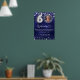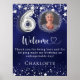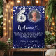 Ett välkommet poster för en 60:e födelsedagsfest. En marin blå bakgrund med elegant faux silver-stjärnor. Den blå färg är ojämn. Anpassa och lägg till ett foto, välkomsttext och ditt namn. Vit brev.